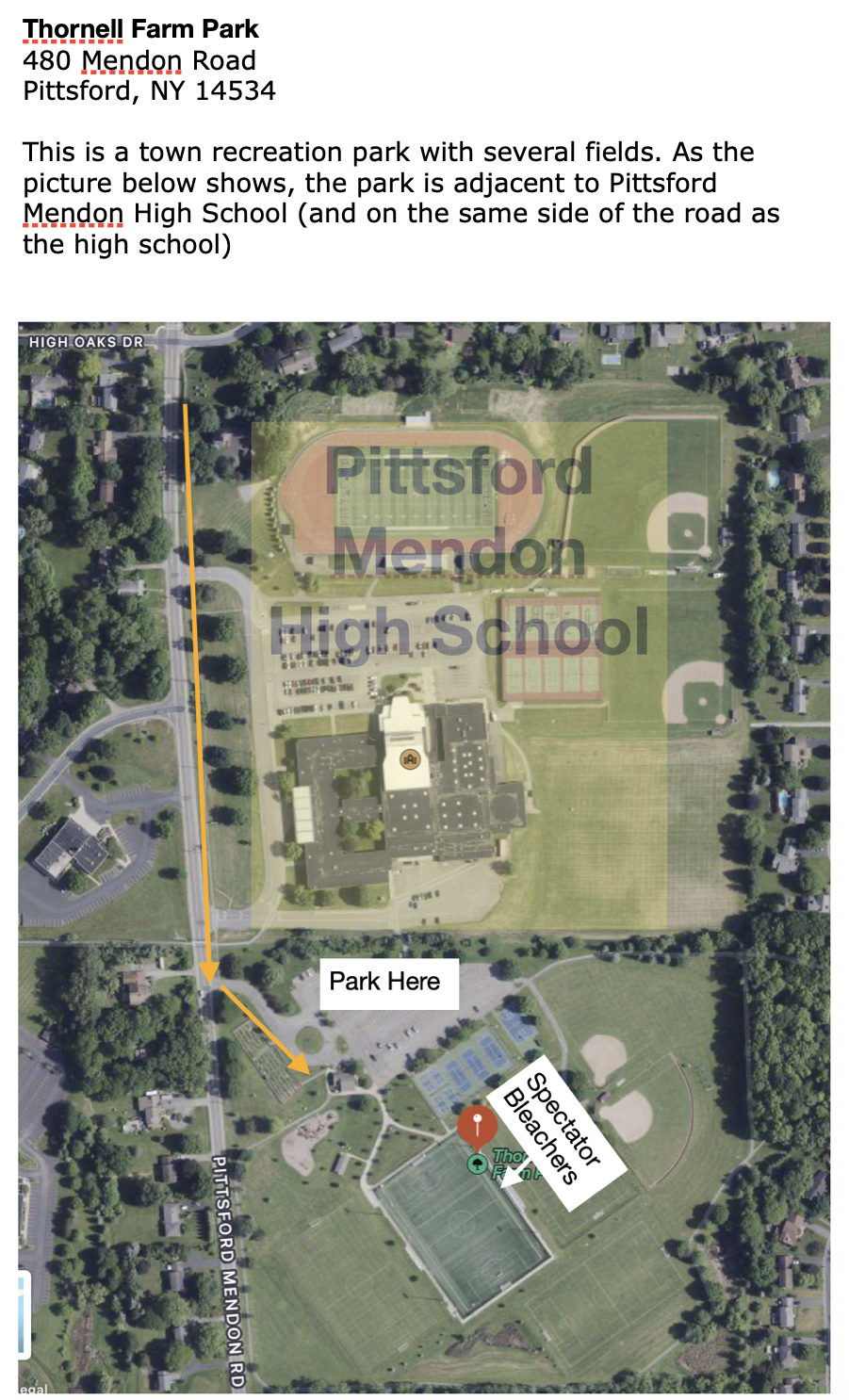 We have two games this week: The first game is Weds 4/22 AWAY at 5pm at Pittsford Thornell Farm Park; and the second game is Sat 4/25 HOME at 9am vs Fairport (players arrive at EHS stadium at 8am!!). PLEASE read through the game day details below so that you know what to expect each game day.